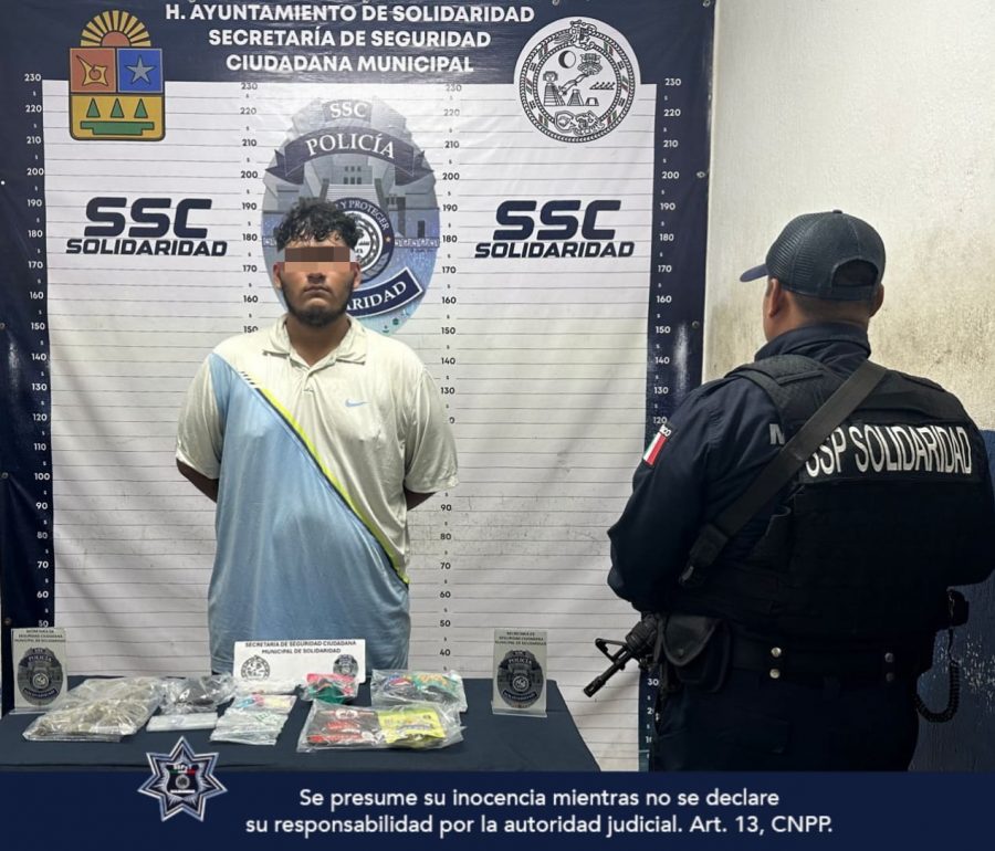 PLAYA DEL CARMEN.- Un joven de 19 años fue detenido en Playa del Carmen con más de 60 dosis de droga, por lo que fue puesto a disposición de las autoridades.