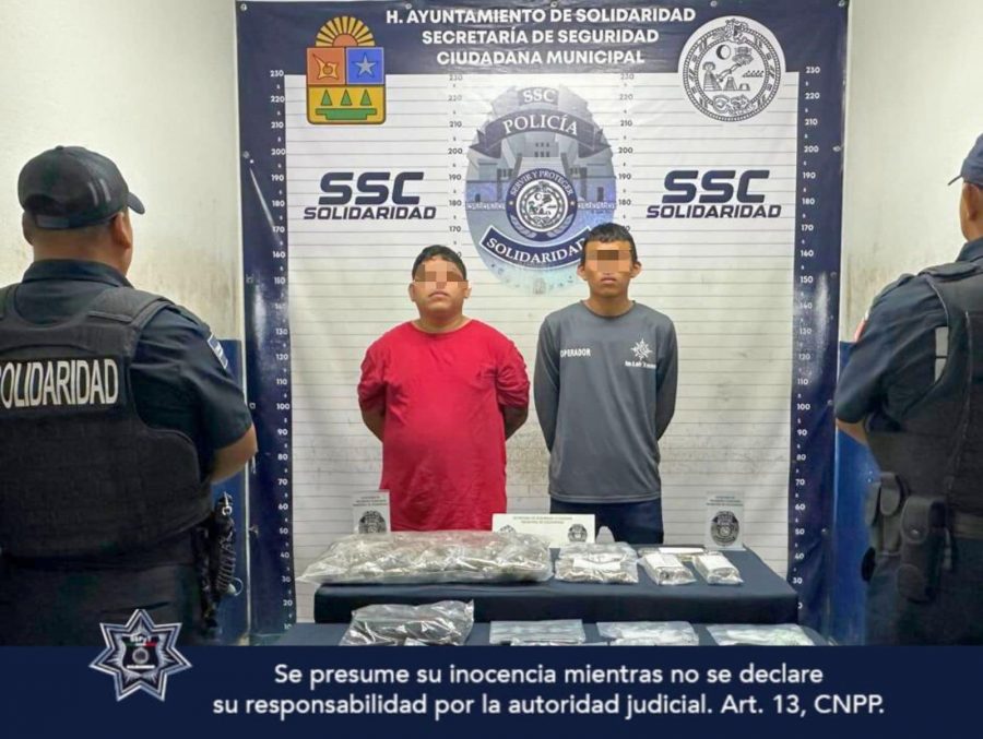 Playa del Carmen.- La Secretaría de Seguridad Ciudadana Municipal (SSCM) detuvo a dos personas del sexo masculino por la probable comisión de delitos contra la salud en el fraccionamiento Villas del Sol, asegurándoles un vehículo, 179 envoltorios de posibles narcóticos y 124 cartuchos útiles.