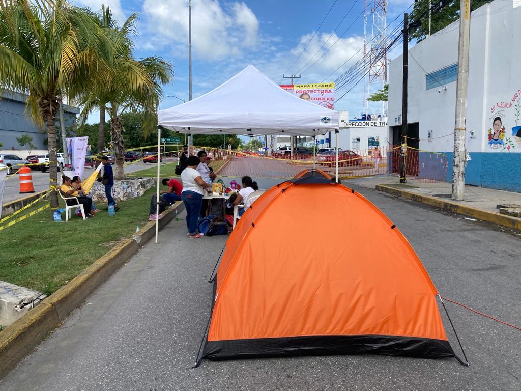 En entrevista en el sitio, María Dolores Patrón Pat informó que están hartos de la falta de respuestas, por lo que decidieron bloquear la avenida Xcaret, a la altura de la Fiscalía, con cintas, mantas y casas de campaña.