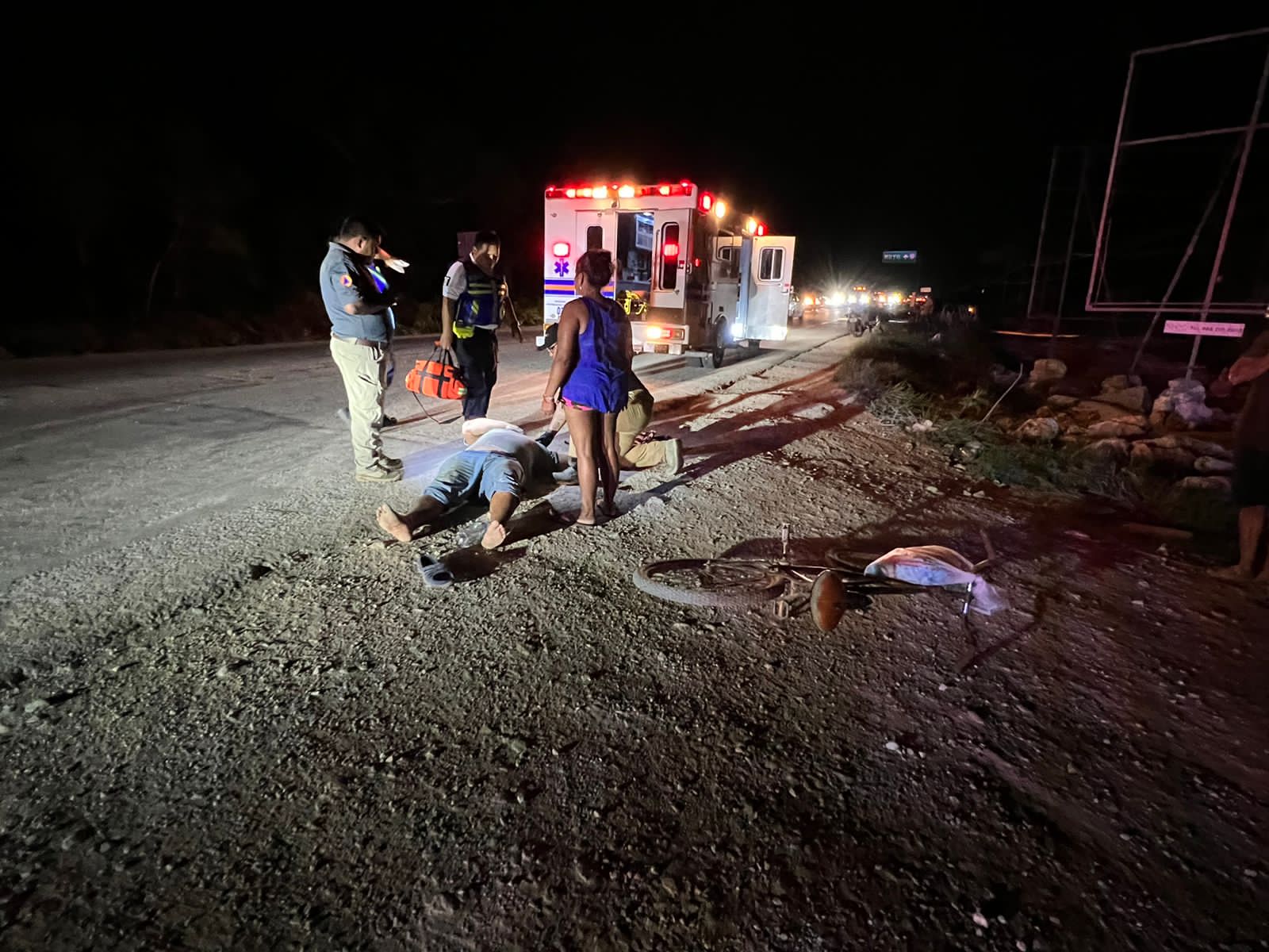 En el tramo Tulum-Felipe Carrillo Puerto de la carretera federal 307, un hombre que viajaba en motocicleta colisionó con un ciclista, resultando ambos lesionados.