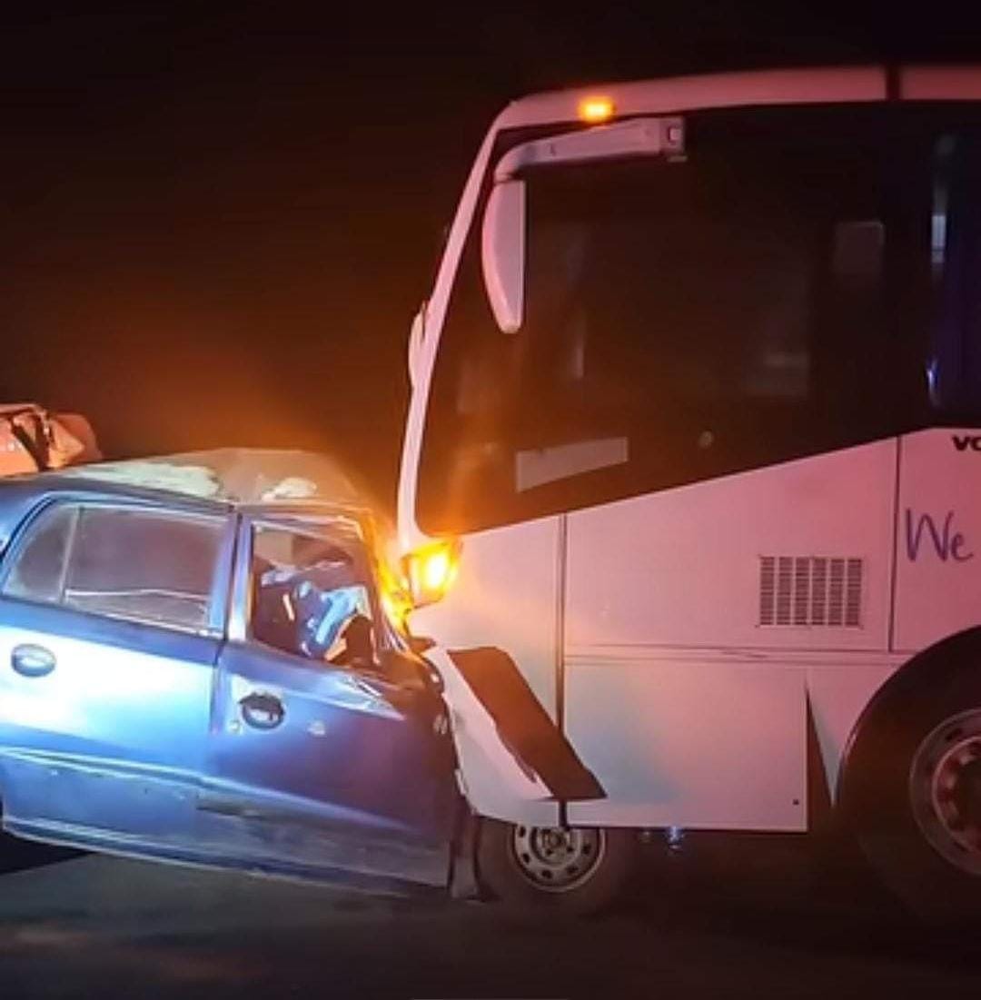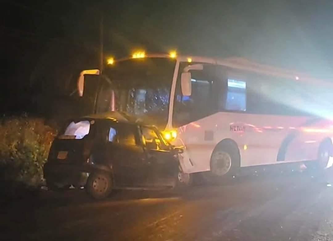 Todo indica que el conductor del auto particular invadió el carril contrario, momentos antes de estrellarse contra el autobús.