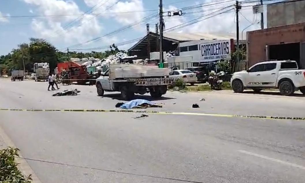CACNÚN- Un motociclista perdió la vida la mañana de hoy sobre la avenida José López portillo, a la altura de la empresa ABC.