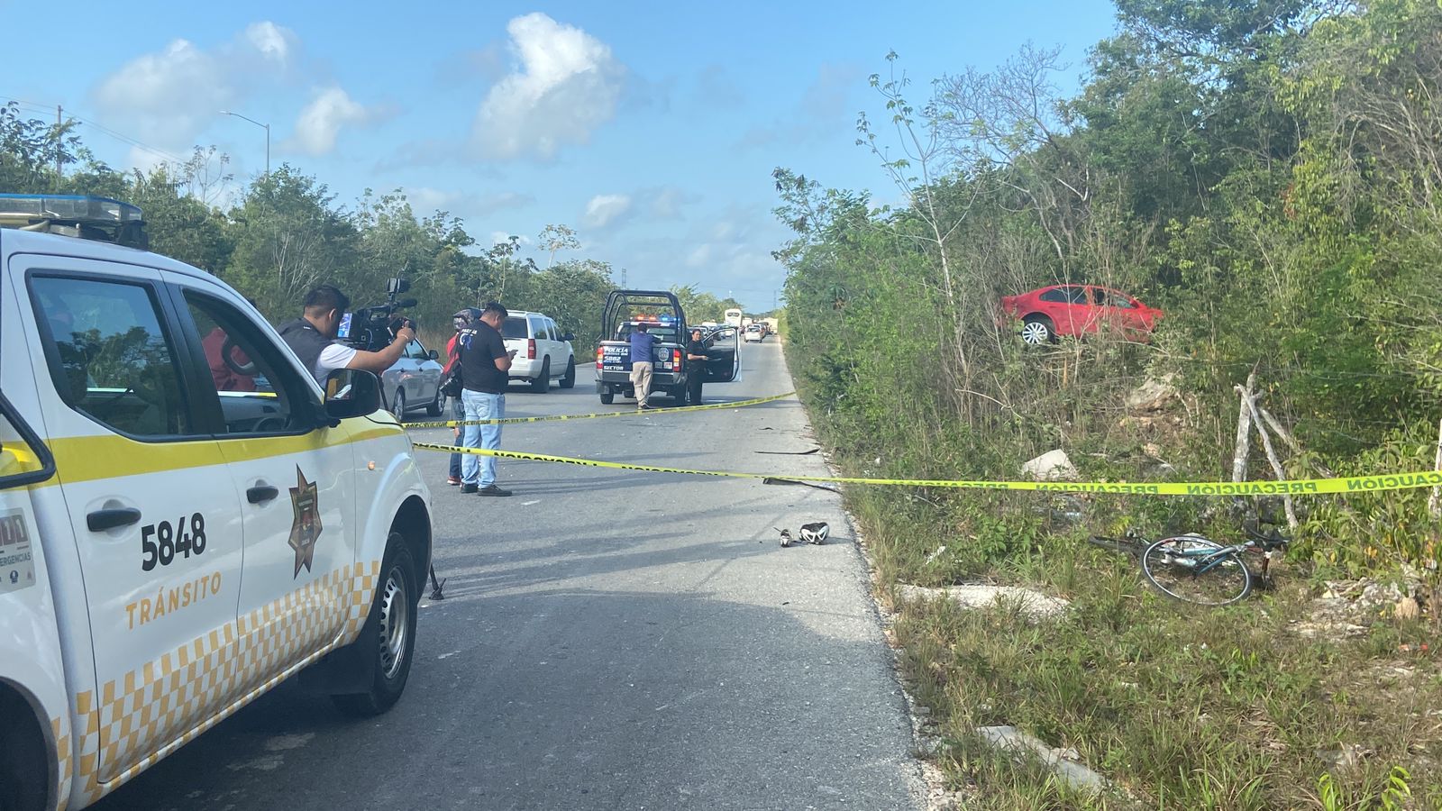 Cancún.- Dos ciclistas, uno muerto y el otro lesionado, fue el saldo de un accidente ocurrido sobre la vía de rodamiento de la avenida Huayacán, fue a unos metros del entronque de la carretera a la autopista Cancún – Mérida, en el municipio de Benito Juárez Cancún; según primeros informes de los hechos el conductor de un Jetta Rojo transitaba a exceso de velocidad perdió el control del automóvil y terminó ocasionando.