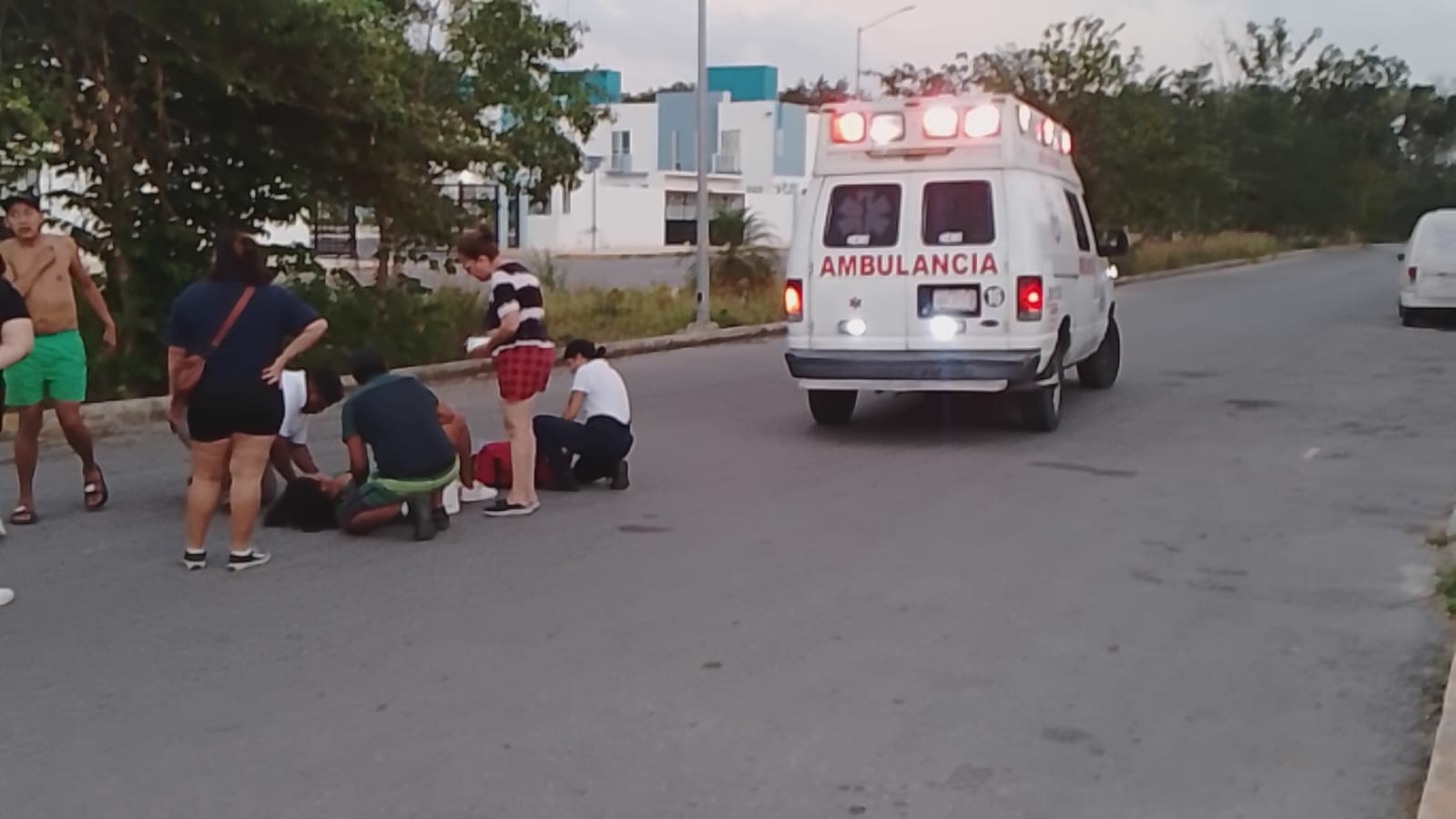 Un grupo de personas que auxilió a la mujer dijo que llamaron al número de emergencia 911 luego de ser testigo del incidente que dejó a la víctima tirada en la vía pública sobre la calle Monte Alluitz en el fraccionamiento Vista Real región 252 en el municipio Benito Juárez.