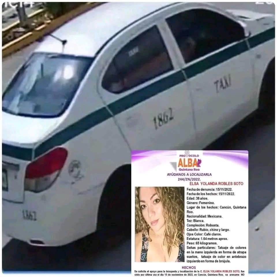 La fémina desapareció el día de ayer luego de abordar un taxi con número económico 1862 del Sindicato Andrés Quintana Roo en la Avenida las Torres, en el Fraccionamiento Andalucía.