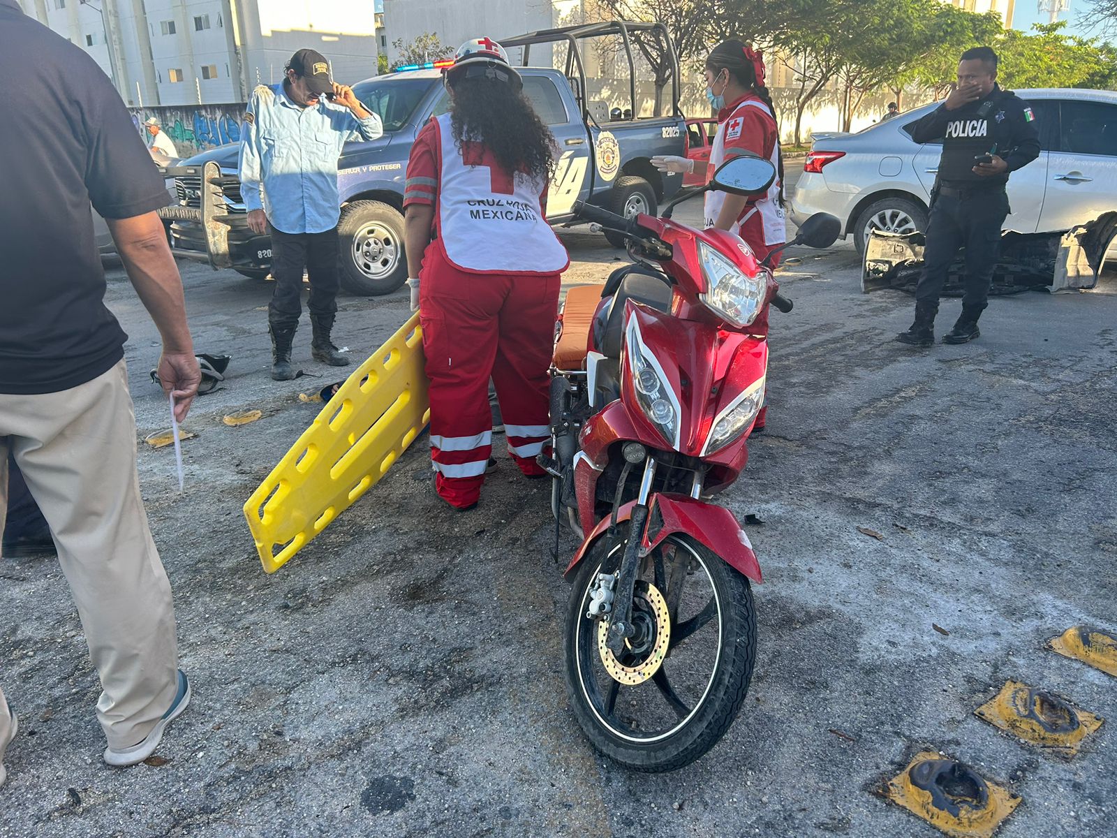 Mujer lesionada en choque entre vehículo y motocicleta en Playa del Carmen