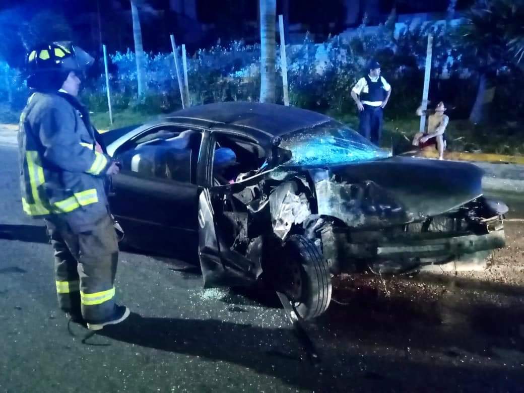 CANCÚN.- Bomberos de Cancún brindaron auxilio a un hombre y una mujer, quienes sufrieron accidente vehicular en KM.11.5 del Boulevard Kukulcán.