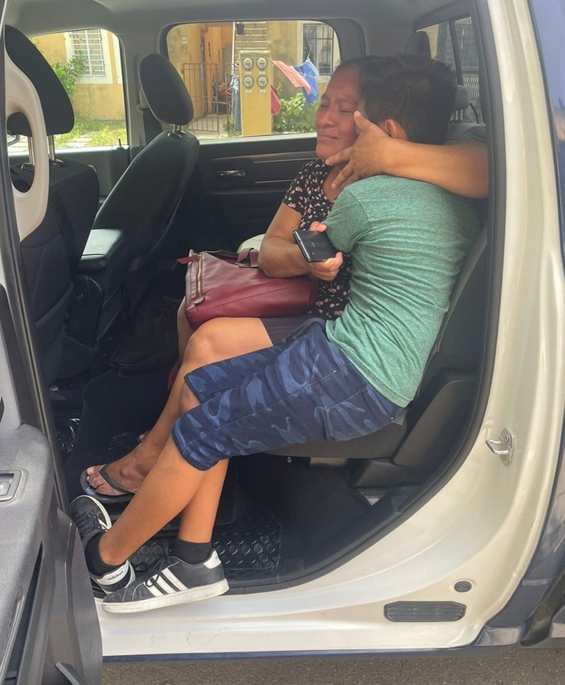 En fotos compartidas por GEAVIG se puede ver a la madre del menor aliviada por reencontrarse con su hijo.