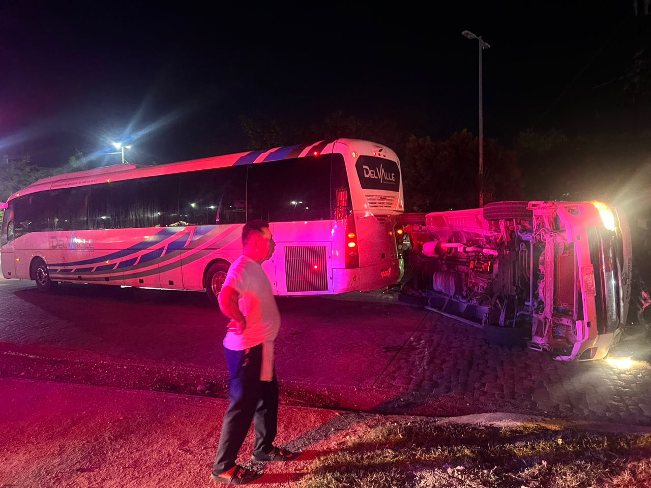 Primeros informes señalan que el conductor de la van perdió el control, por causas desconocidas, ocasionando que esta unidad chocara primero con la banqueta, y luego contra el autobús, para finalmente quedar volcada.