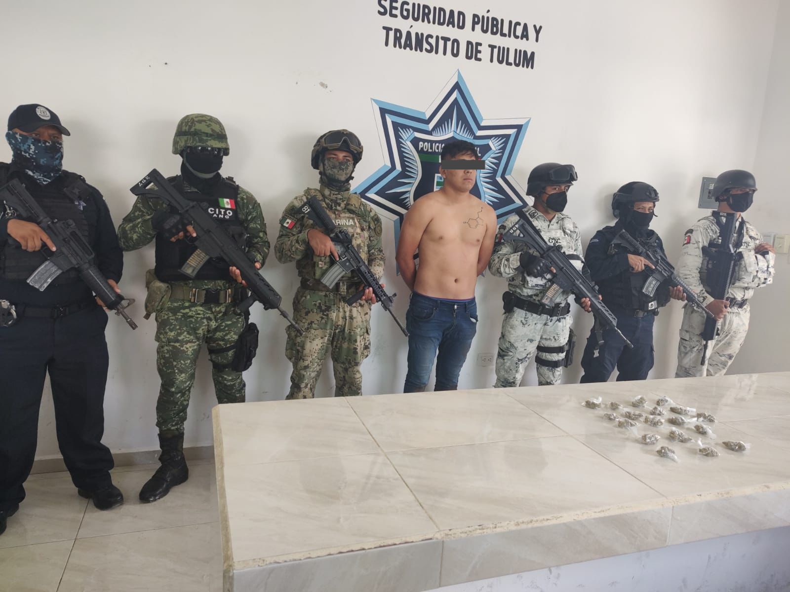 TULUM.-Con 18 dosis de presunta droga en su poder, una persona del sexo masculino fue detenida este domingo en Tulum.