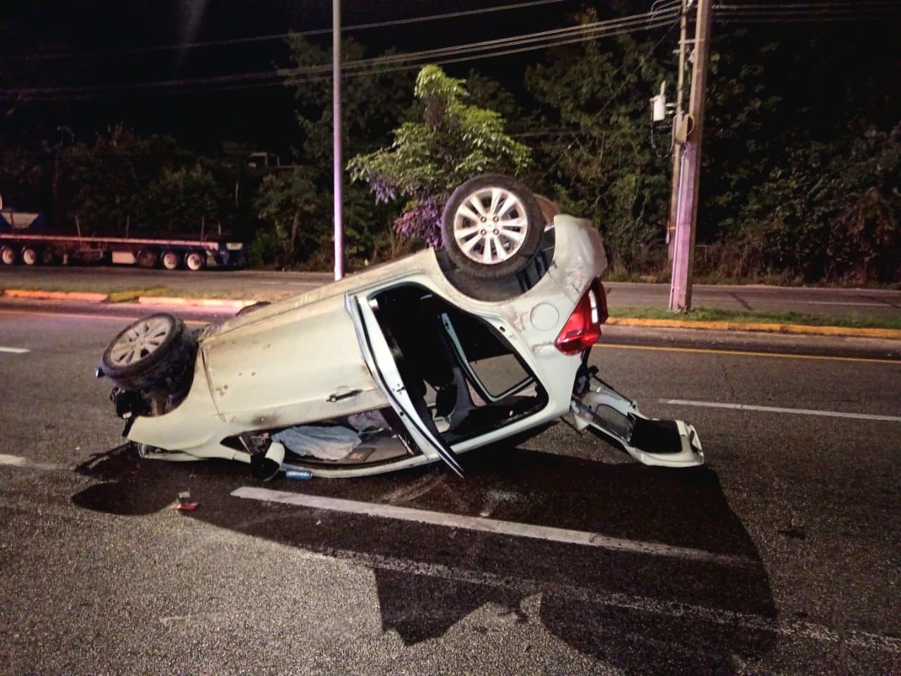 Los hechos ocurrieron alrededor de las 4:45 de la mañana, cuando al coche Beat Chevrolet, color blanco, que viajaba hacia el norte, al pasar el puente federal de Puerto Aventuras se le reventó un neumático de la parte frontal derecha.