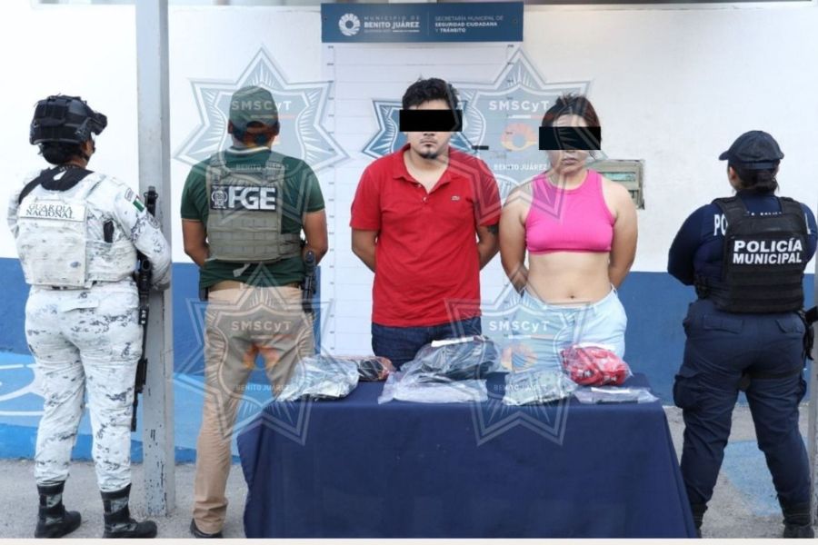 Cancún.- Una joven pareja fue detenida en pleno operativo “Blindaje Cancún”, acusada de distribuir sustancias en la vía pública, utilizando como punto de operación un vehículo particular. El arresto se llevó a cabo en la región 516.