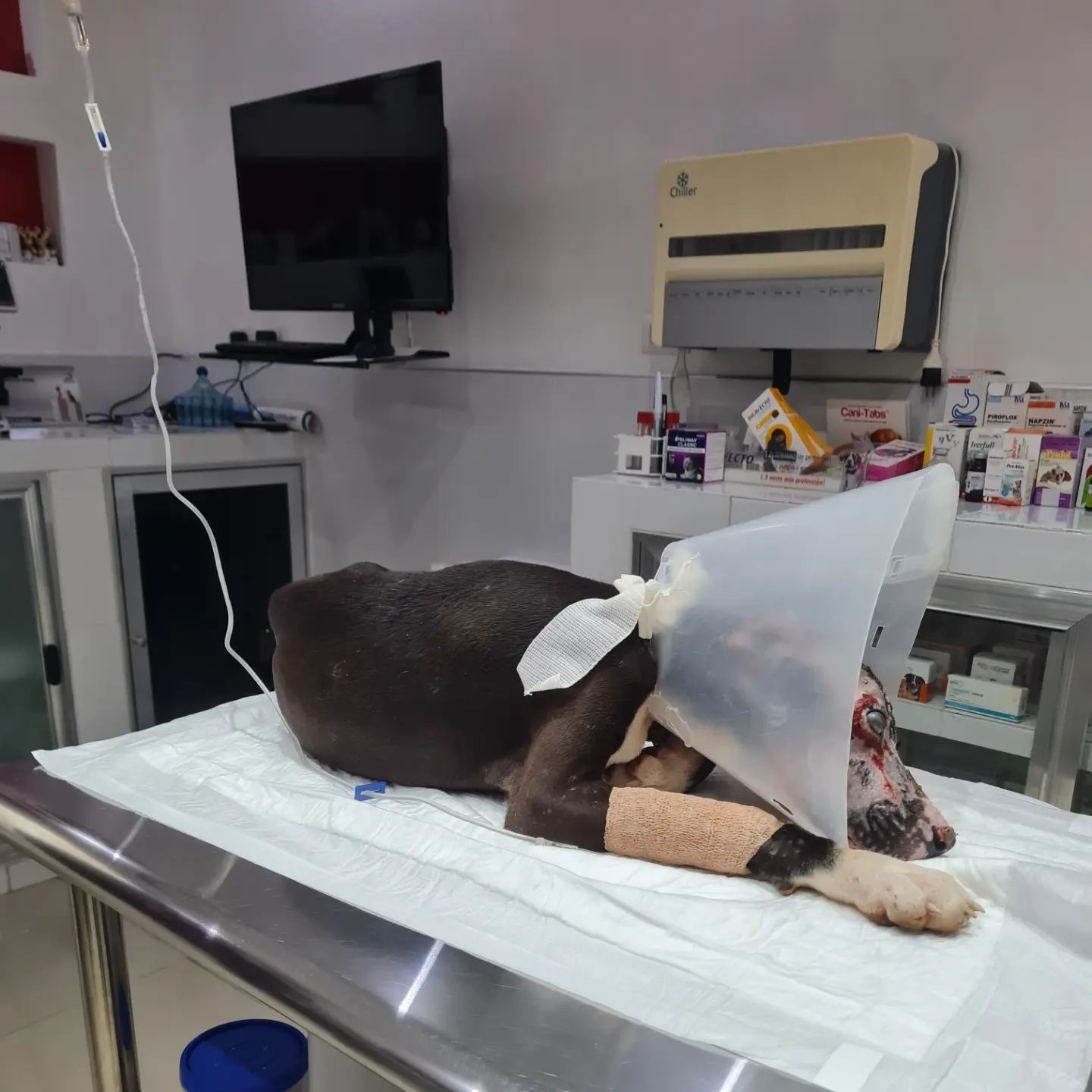 El can sigue bajo observación, aislado y en cuarentena. Por ahora no recibe visitas, pero aseguran que ya han recibido muchos mensajes de personas que quieren adoptarlo, pero ahora están enfocados en que recupere completamente su salud.