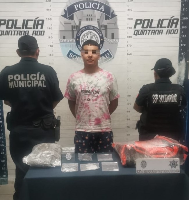 PLAYA DEL CARMEN.- La Policía Municipal de Solidaridad detuvo en diversos operativos a 4 personas en posesión de posibles narcóticos, además quedó asegurado un local.