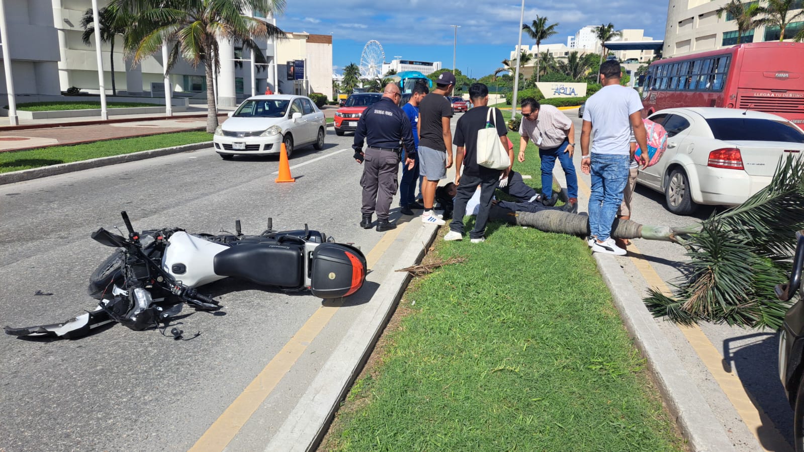 Policía pierde el control de su moto y se estrella contra palmera en la Zona Hotelera de Cancún