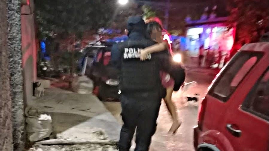 CANCÚN.-Elementos de la Secretaría Municipal de Seguridad Ciudadana y Tránsito de Benito Juárez, rescataron a dos menores de una casa habitación que se incendiaba en la Supermanzana 229.