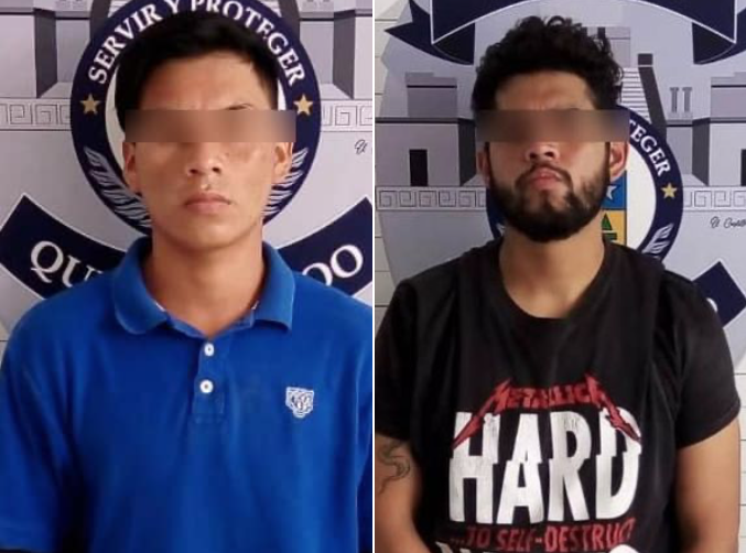 CANCÚN.-Elementos de la Policía Quintana Roo detuvieron a dos masculinos quienes dicen llamarse Alexis “N” de28 años de edad, y Geslin “N” de 22 años, por el delito de extorsión y amenazas.