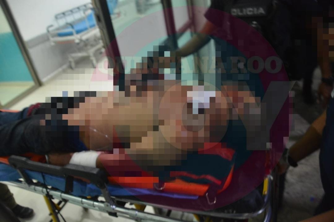 El masculino fue asistido por paramédicos del dispensario médico del poblado Leona Vicario, debido a los balazos fue trasladado al Hospital General de Cancún.