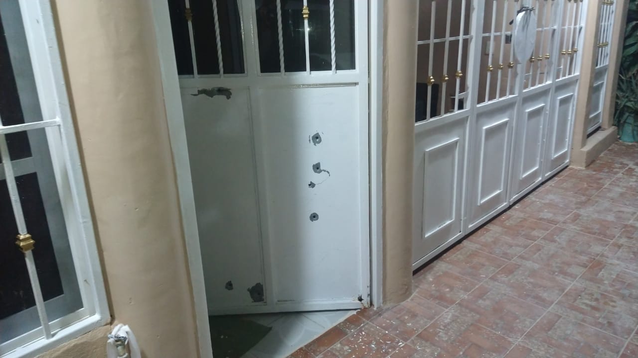 De forma extraoficial se dijo que la puerta principal de la vivienda presentaba varios impactos de arma de fuego.
