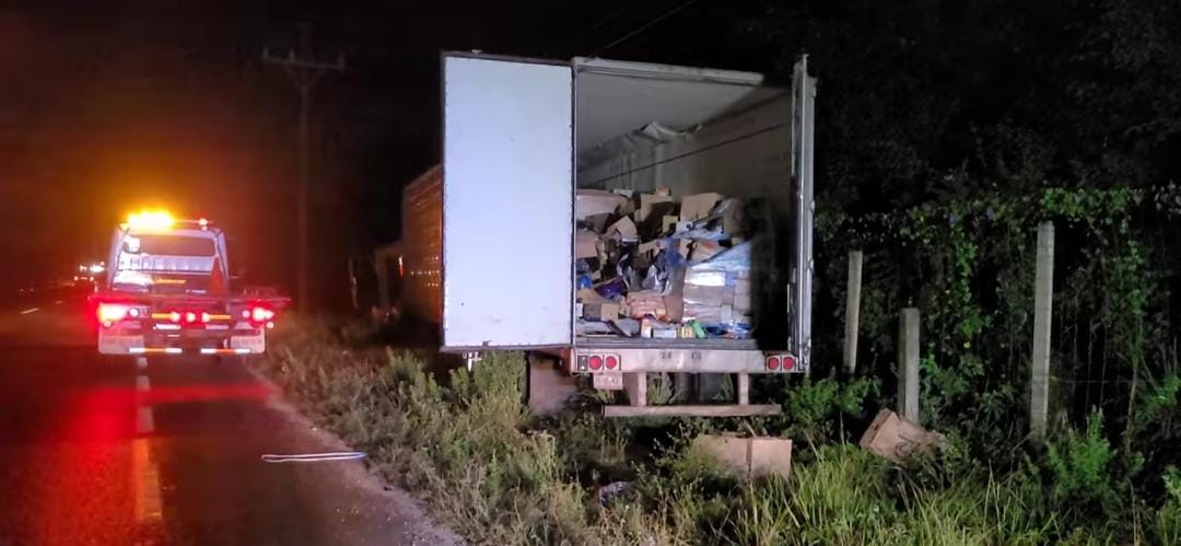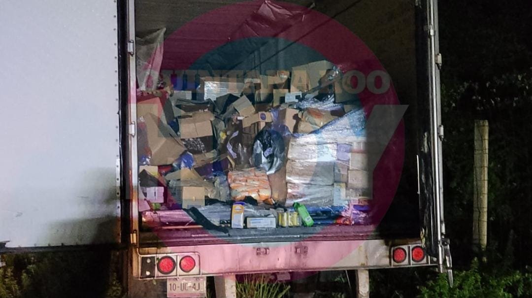 Playa del Carmen.- Un tráiler cargado de productos de Chedraui terminó fuera de la carretera durante la madrugada de este sábado.