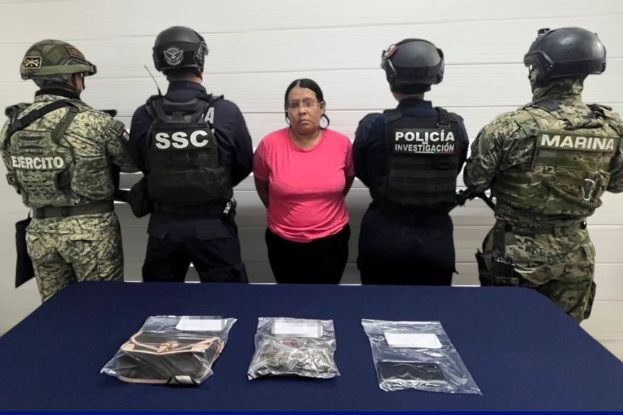 Cozumel.- En un operativo conjunto de alto impacto entre fuerzas de seguridad federales y estatales, fue detenida una mujer identificada como Karen Abigail “N”, presunta distribuidora de estupefacientes.