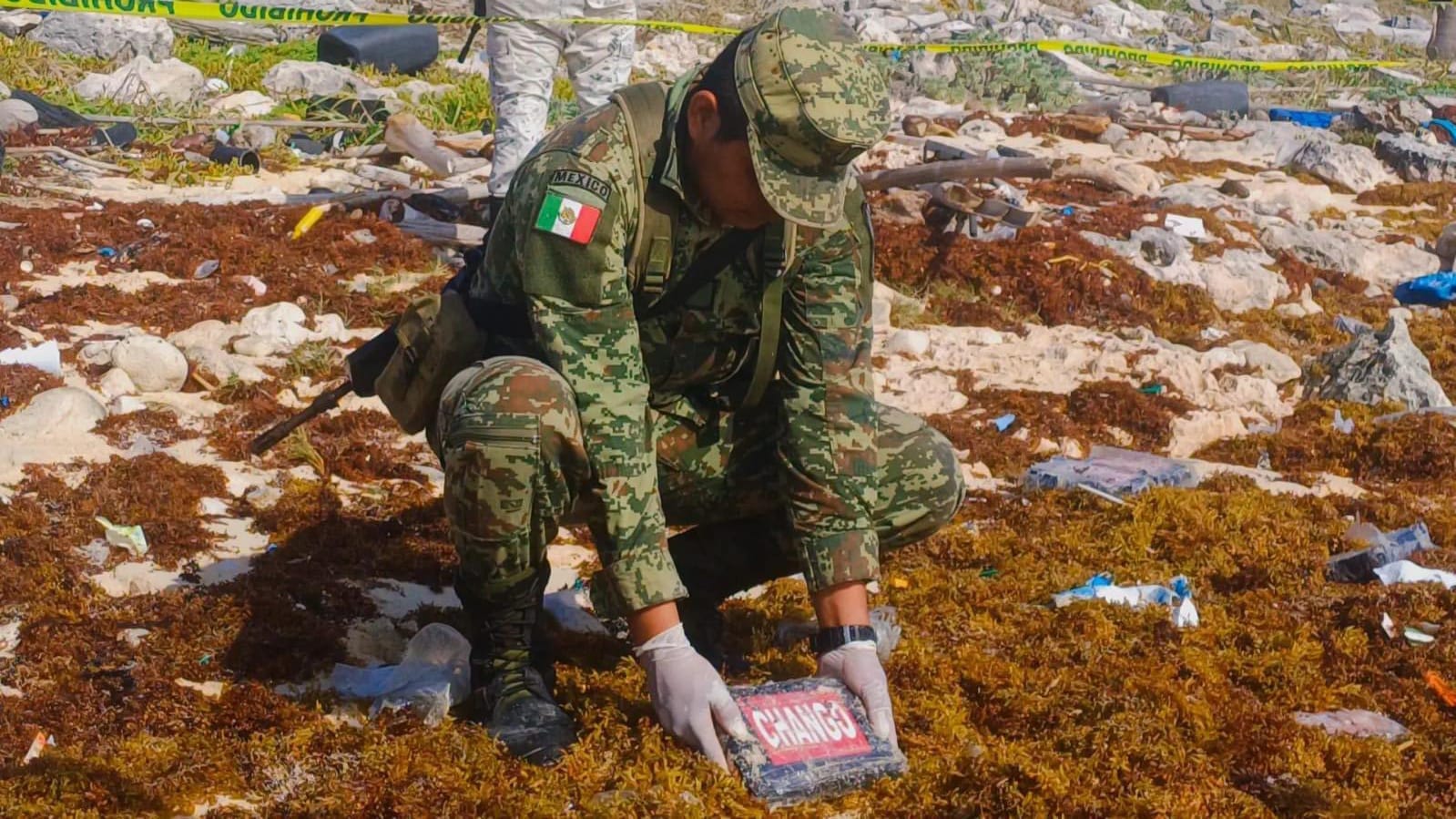 El reporte señala que durante su recorrido en la zona costera del municipio de Cozumel, el personal militar al realizar reconocimientos terrestres a la orilla de la playa, localizó por hallazgo 22 paquetes en cuyo interior contenían 22 kilogramos aproximadamente de una masa blanca, compacta y húmeda, con características similares a la cocaína, los cuales fueron puestos a disposición de las autoridades correspondientes, con el objeto de que se realicen las investigaciones y acciones periciales que confirmen el tipo y cantidad de droga.