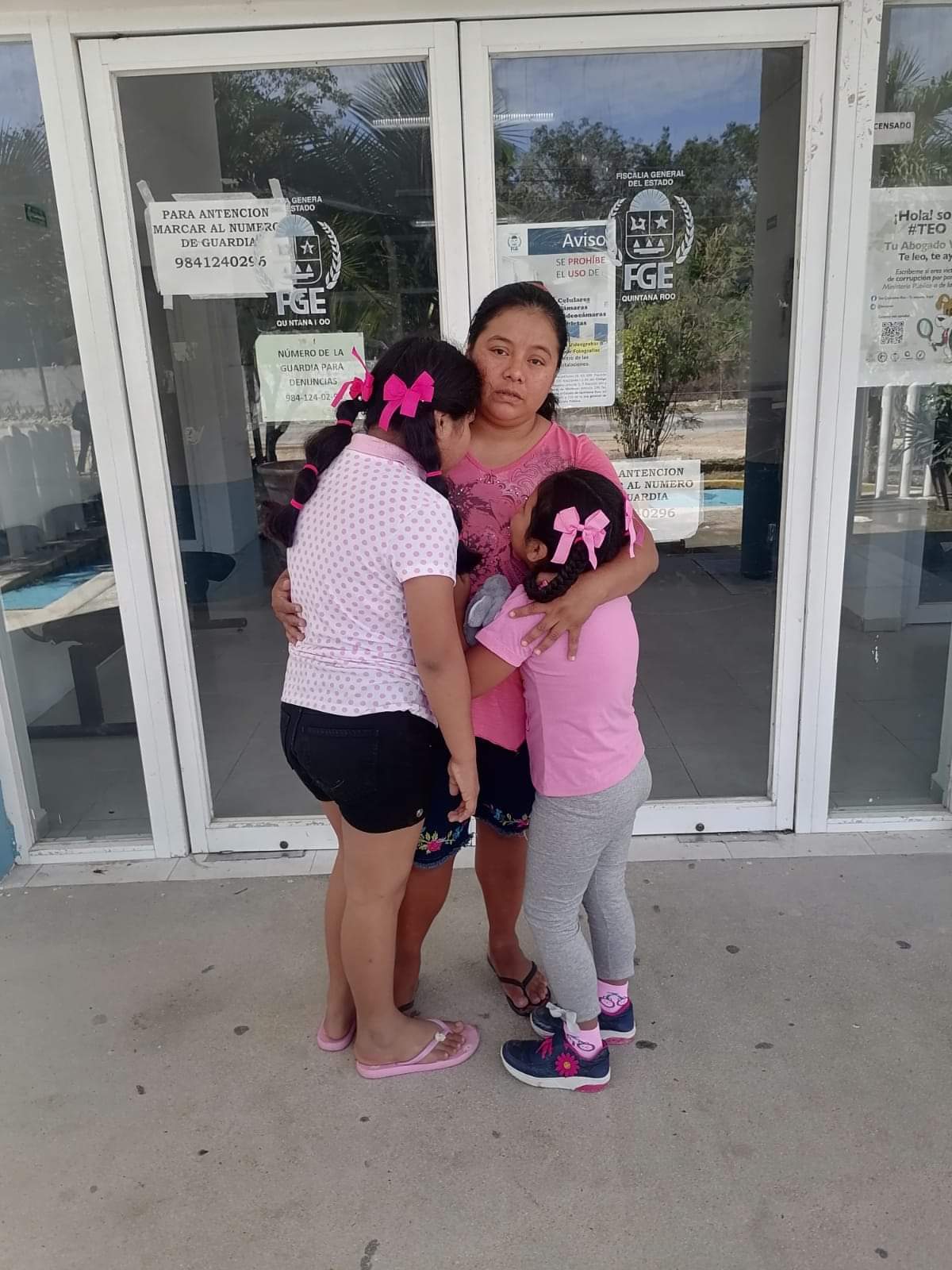 A través de redes sociales, el Colectivo Femenil Xtabay dio a conocer esta noticia, con una foto de la madre con sus dos hijas, a las afueras de la sede la Fiscalía General del Estado, al parecer en Playa del Carmen.