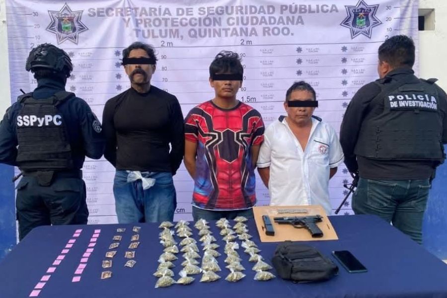 Tulum.- Autoridades de seguridad informaron sobre la detención de tres hombres en un operativo realizado el pasado miércoles 20 de agosto en la zona centro del municipio.