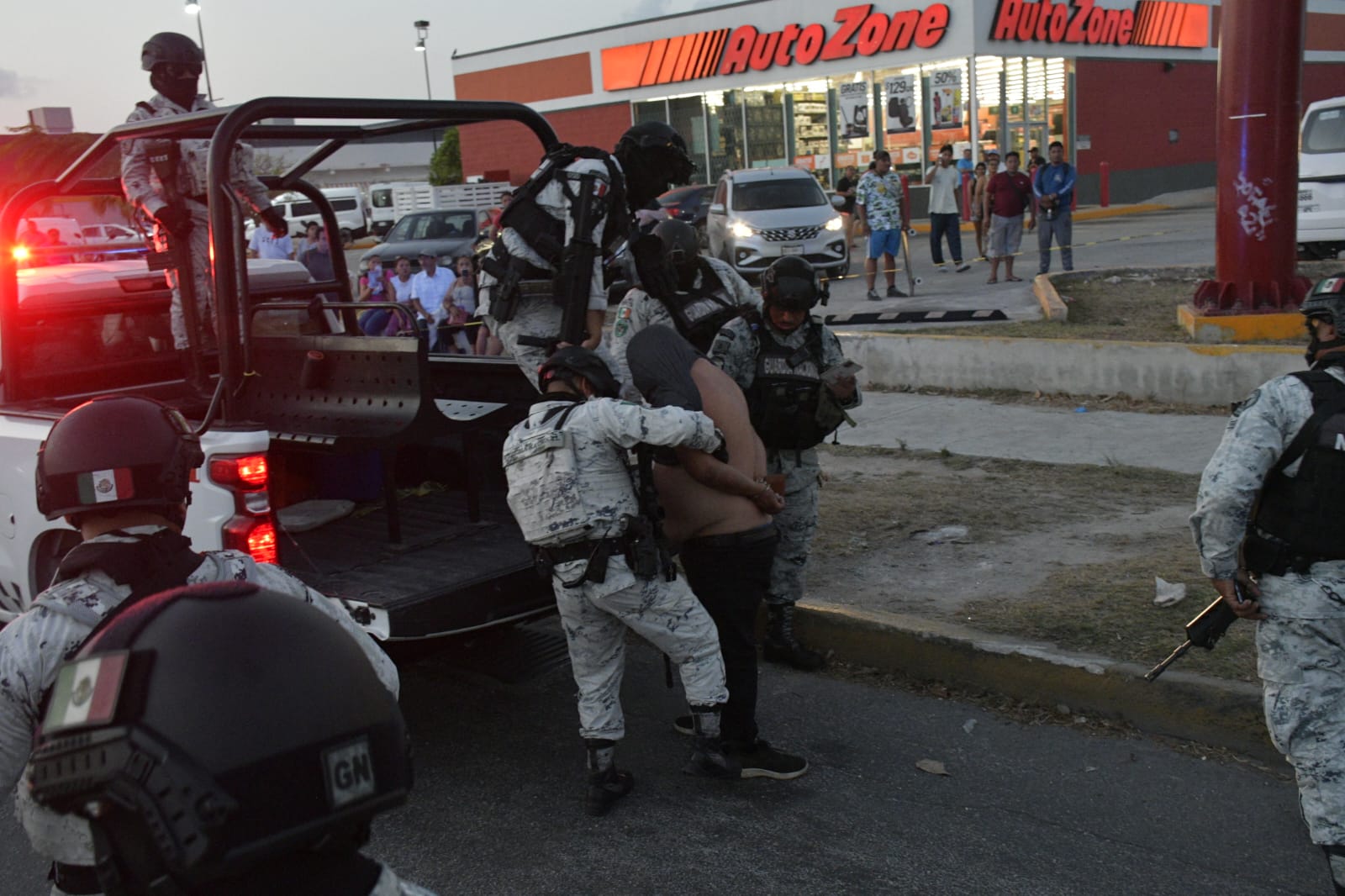 Los oficiales de la Guardia Nacional lograron el rescate en la intersección de la avenida 20 de noviembre y Chac Mool, donde también se realizó la detención de los individuos.