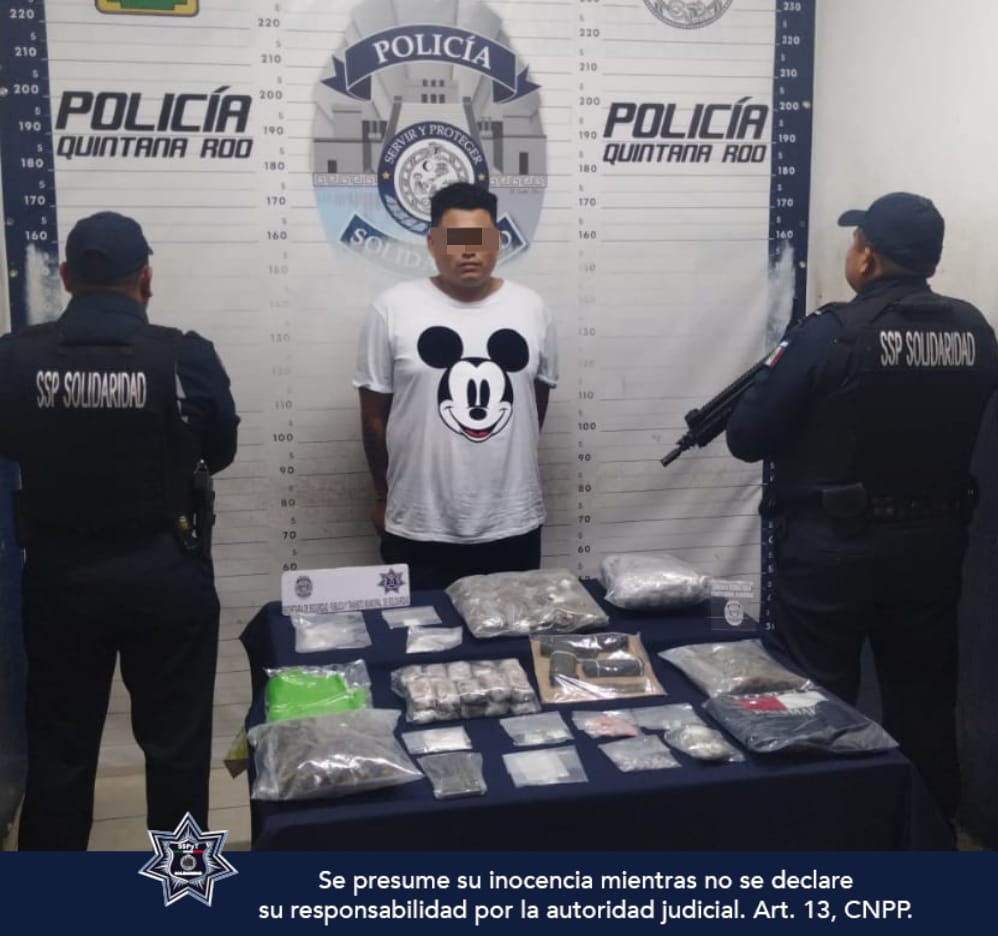 PLAYA DEL CARMEN.- En 3 acciones efectivas la Policía Municipal de Solidaridad asestó duro golpe a la delincuencia con el aseguramiento de más de 250 dosis de posibles narcóticos, 1 arma de fuego y la detención de 5 personas. Esto es resultado de las labores de vigilancia permanente para garantizar la seguridad y paz de los solidarenses.
