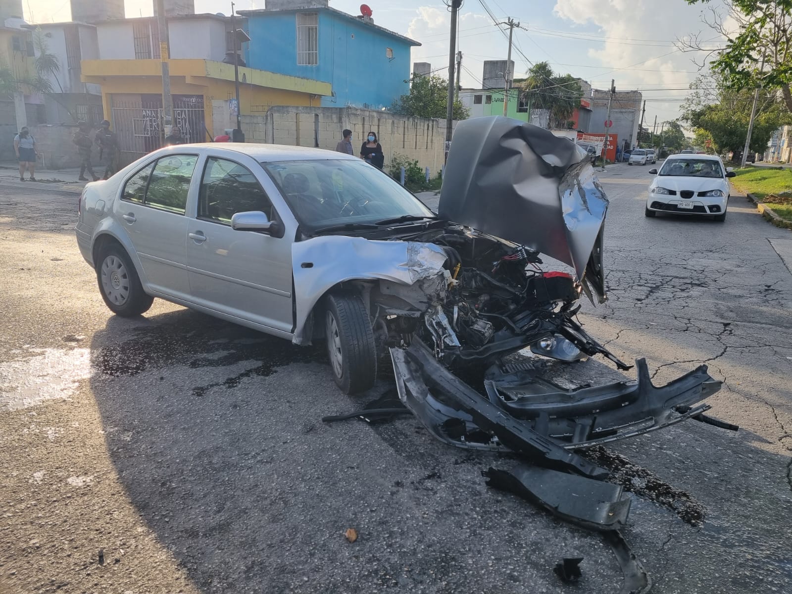 CANCÚN.- Un fuerte accidente se registró la mañana de este miércoles, entre un vehículo particular y un camión de Semar, que dejó como salda una persona lesionada, los hechos ocurrieron el cruce de las avenidas Leona Vicario con 127, frente al fraccionamiento La Guadalupana. De acuerdo con los primeros reportes la conductora del automóvil Jetta, que transitaba sobre la avenida 127 proveniente de la Avenida Talleres al llegar a la avenida Leona Vicario colisionó contra el camión de la marina.