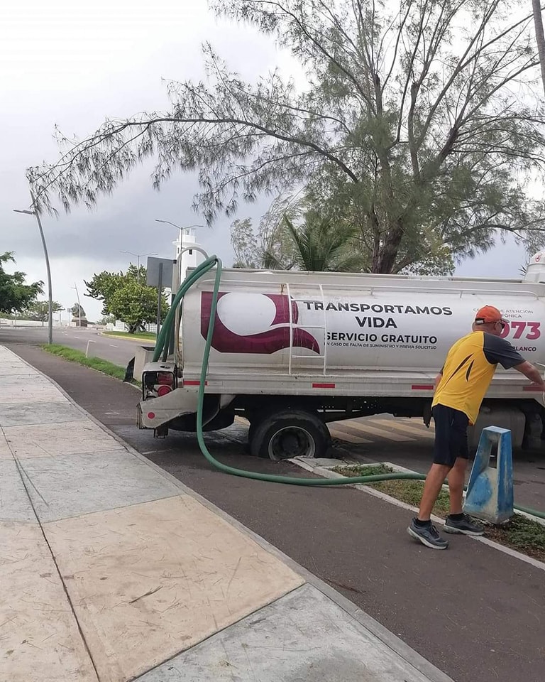 CHETUMAL.- Una pipa de agua del Gobierno del Estado se hundió por un desfonde en el asfalto, sobre el bulevar Bahía, a la altura del centro social Bellavista.