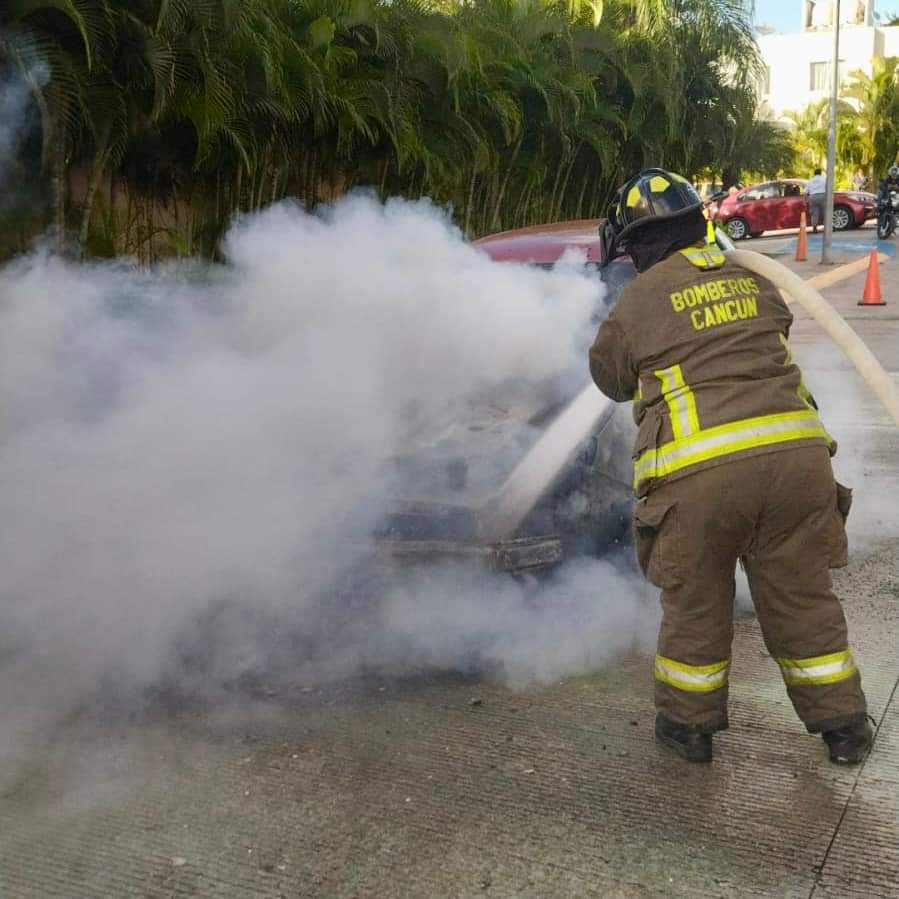 Cancún.- La tarde de ayer lunes, un automóvil Dodge tipo Vision se incendio en las inmediaciones de la Supermanzana 333 de Cancún.