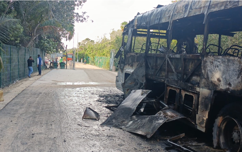 CANCÚN.-Un autobús que transportaba personal de la Zona Hotelera de Cancún se incendió esta mañana alrededor de las 8:00 AM en el kilómetro 26 del Bulevar Kukulcán.