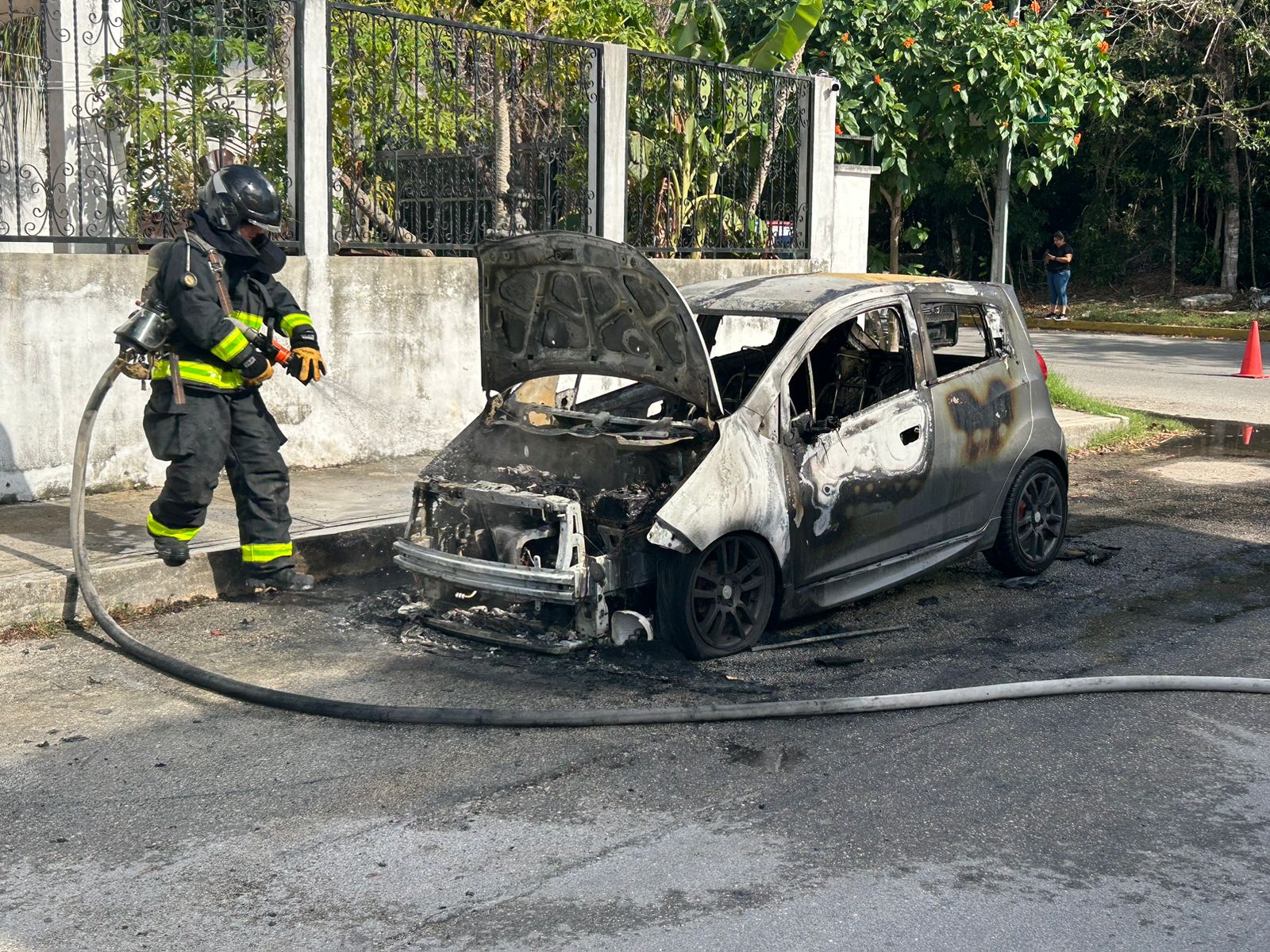 PLAYA DEL CARMEN.- Un automóvil se incendió esta mañana, esto en la calle Mayapán con Zac Be, en el fraccionamiento Cataluña de esta ciudad. No hubo lesionados.