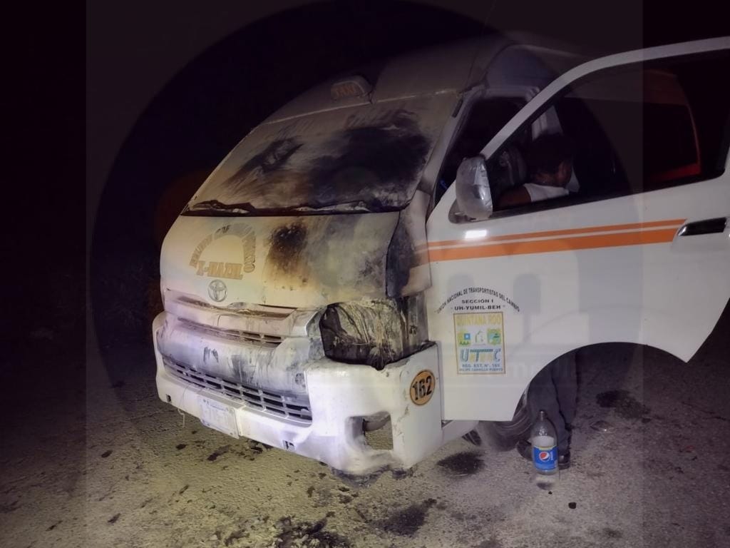 Felipe Carrillo Puerto.- Un cortocircuito fue la causa de que una combi de la Unión Nacional de Transportistas Campesinos (UNTRAC) terminara incendiada la noche de ayer; el accidente ocurrió cuando la unidad circulaba a la altura del crucero de la comunidad de Chancah Veracruz.