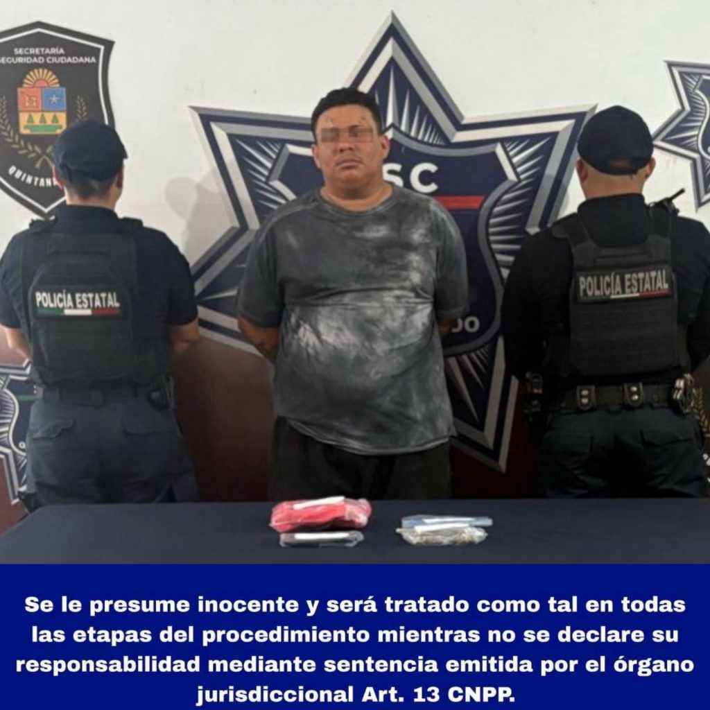 Cancún.- Se realiza la detención de Pablo Jhosep “N”, presunto implicado en delitos Contra la Salud.