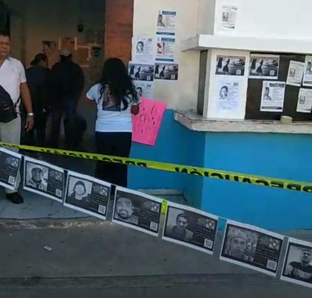 Y para bloquear el acceso, colocaron un tendedero, el cual contiene los cárteles de búsqueda de sus familiares que han desaparecido.