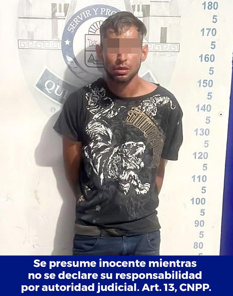 La Secretaría de Seguridad Pública de Quintana Roo detuvo a Tadeo “N” de 28 años, por su presunta participación en el delito de desobediencia y resistencia de particulares en Benito Juárez.
