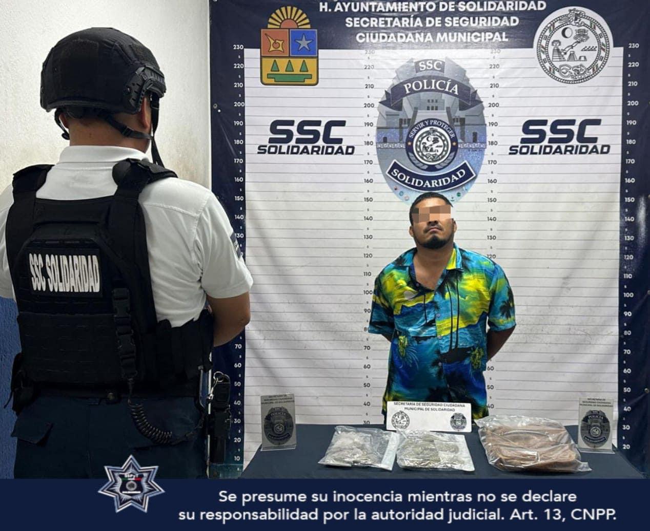 La Policía Municipal aseguró a un sujeto por posibles delitos contra la salud en la zona de Playacar Fase II.