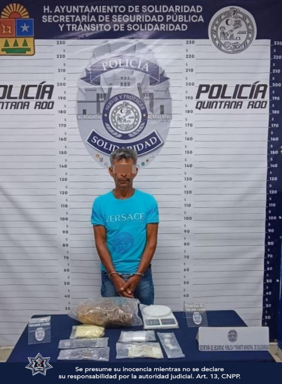 narcóticos, por policías de la Secretaría de Seguridad Pública y Tránsito Municipal de Solidaridad.