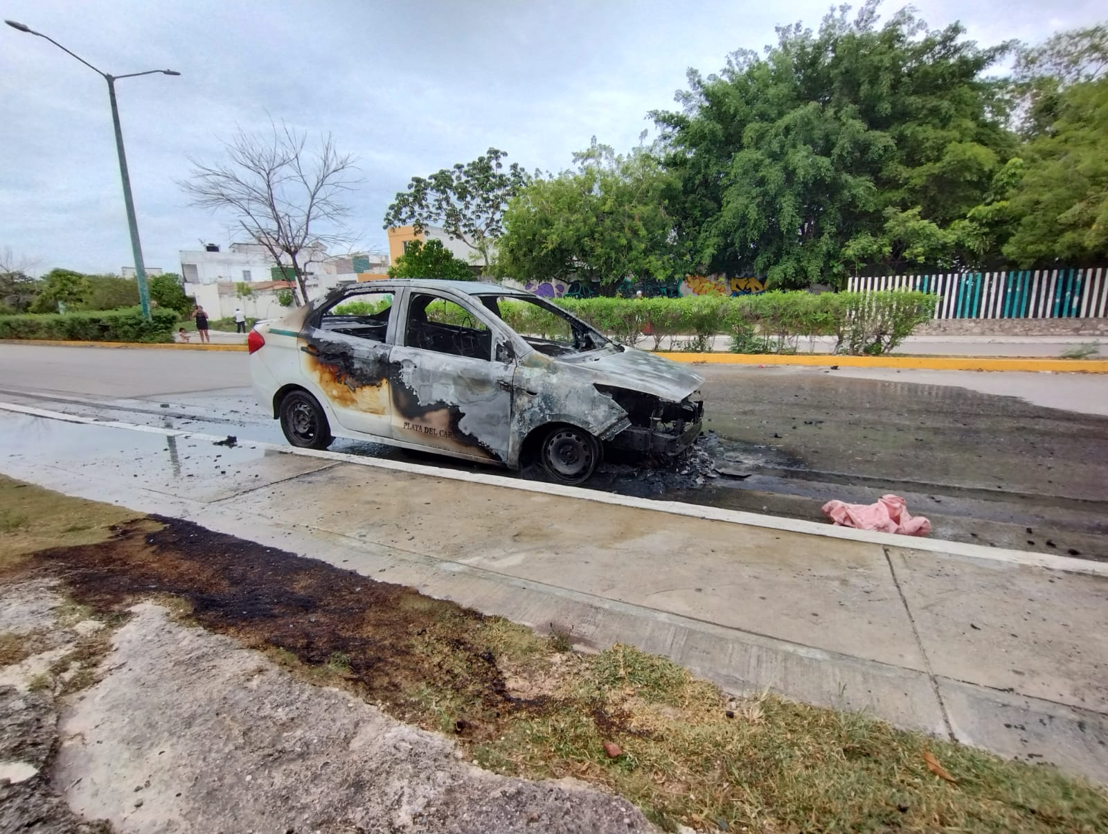 Playa del Carmen. – A punto de quedar atrapado en su unidad, la cual de la nada ardió en llamas, un taxista logró salir ileso del siniestro, para luego pedir ayuda a los cuerpos de emergencia.
