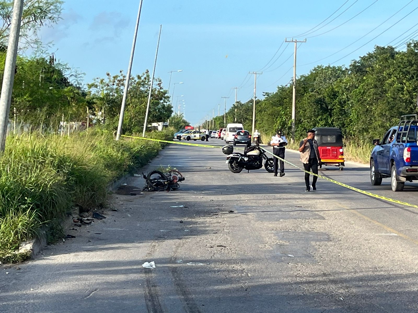 CANCÚN.- Un motoneto muerto el saldo de un accidente en el periférico a la altura de la región 253 en Cancún.