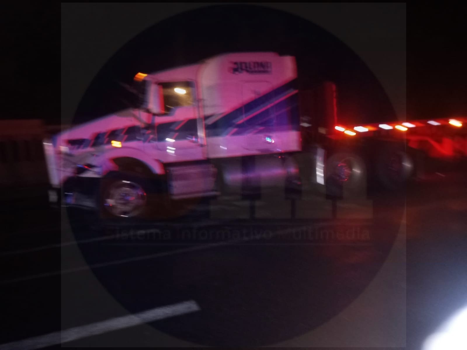 En el lugar del percance, el tráiler quedó abandonado a un costado de la carretera federal y uno de sus remolques terminó parcialmente en la maleza, luego de que su conductor se diera a la fuga.