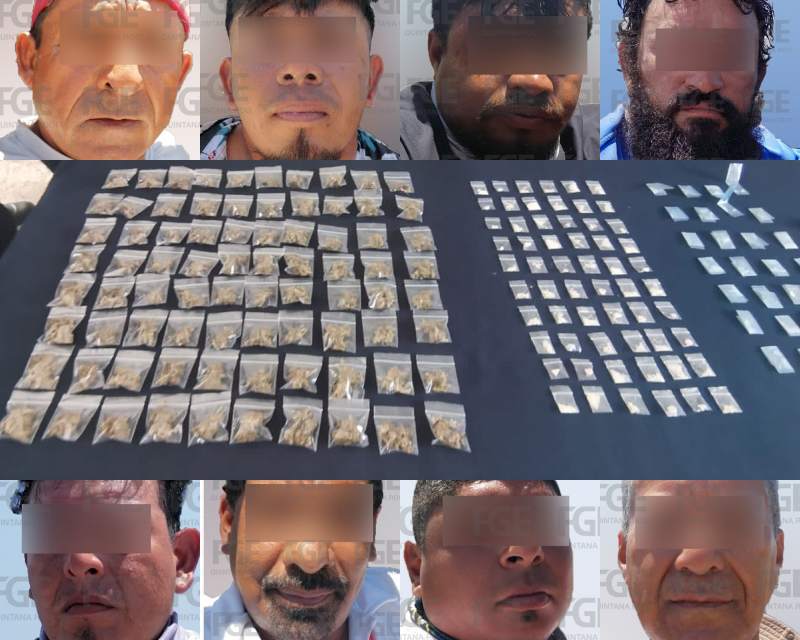 CAMCÚN.- Operativo “Playa Segura” en el que participan elementos de las policías estatal y municipal, corporaciones federales y de las fuerzas armadas de México, permitió la detención de personas por su presunta participación en delitos contra la salud, en la modalidad de narcomenudeo.