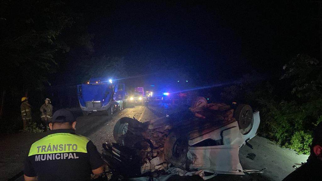 TULUM.- Una conductora perdió la vida y dos personas más resultaron lesionadas, luego que este grupo chocara, a bordo de un Jetta, contra un tractocamión, esta madrugada en la carretera Tulum-Cobá.