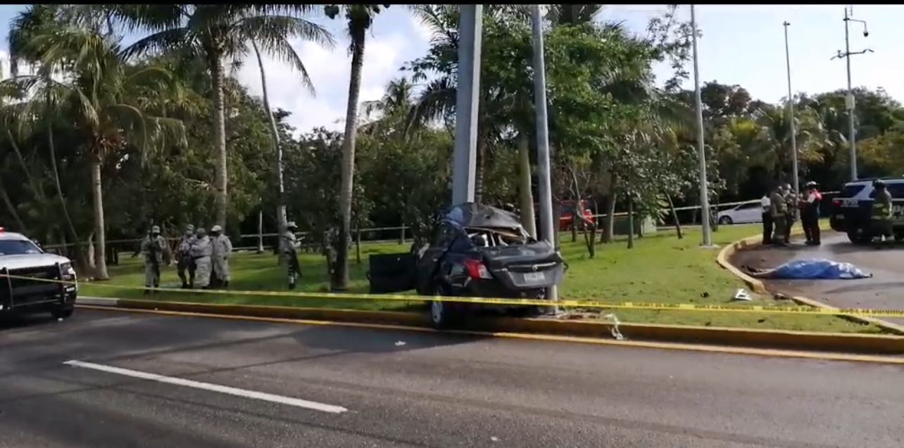 El conductor del automovil perdió el control de su unidad impactandose con un poste de señalamiento en el carril a Punta Nizuc.