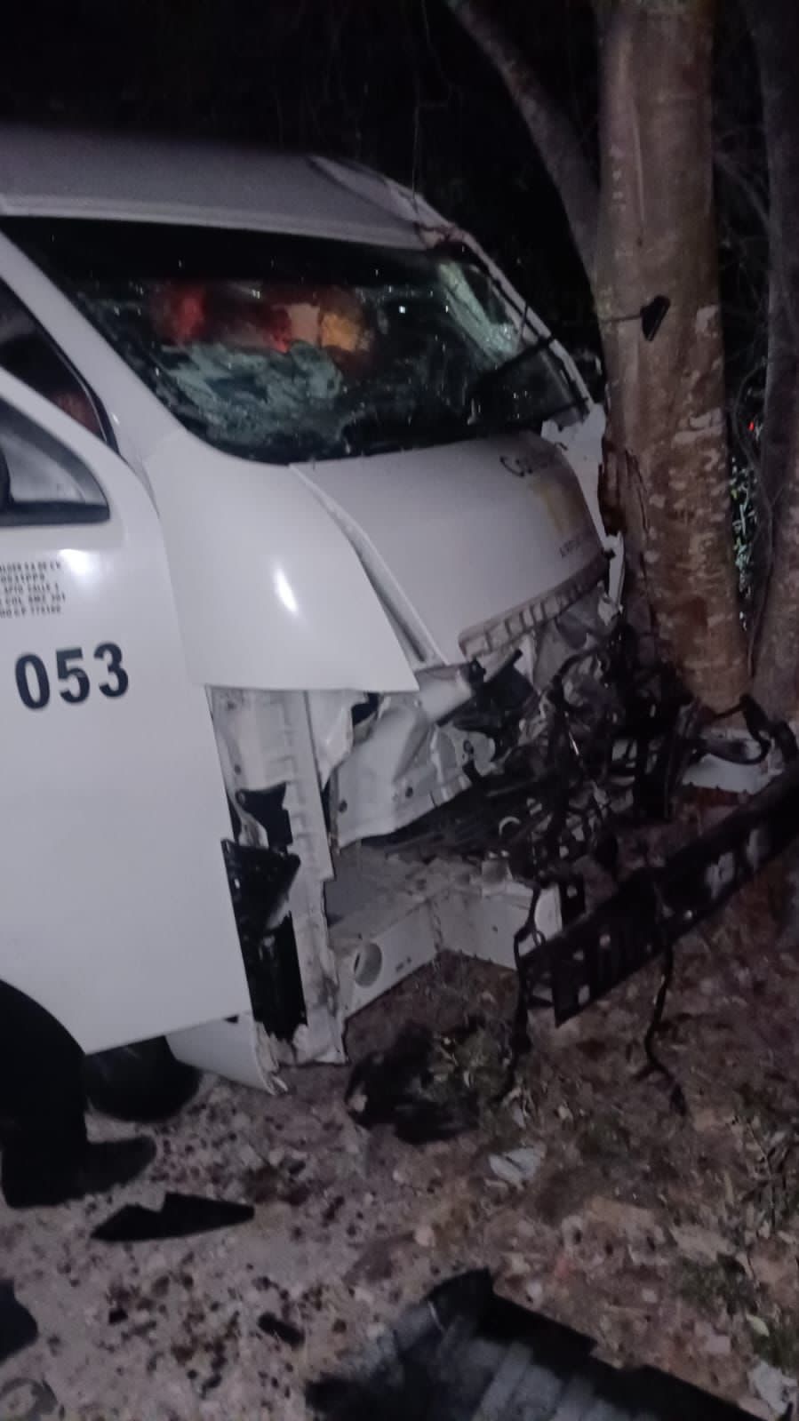 Cancún.- Esta madrugada, una van de transporte de personal se estrelló contra un árbol, luego que su conductor perdiera el control del vehículo, lo que dejó como saldo a cinco personas lesionadas, sobre la carretera Gas Auto de esta ciudad.