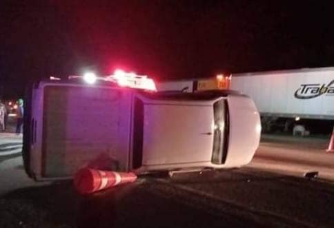Los datos preliminares indican que una camioneta presuntamente al servicio del tren maya salió de una de las brechas colisionando a la unidad de transporte público provocando el accidente, la combi terminó fuera de la vía de rodamiento, mientras que la camioneta tipo hilux toyota quedo volcado en la carretera.