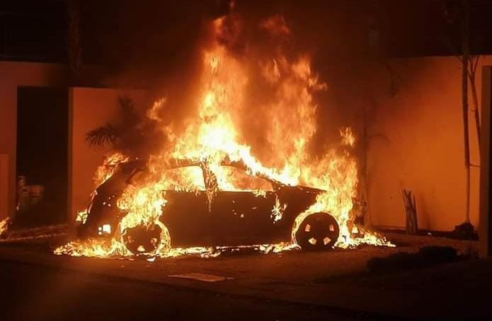 Chetumal.- Por causas aún desconocidas, un automóvil que estaba estacionado terminó consumido por las llamas en la residencial Andara de la capital del estado, la noche de ayer.